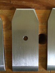 My cap irons (or chipbreakers, if you prefer) are unlike any other on the market today. Most modern cap irons have a bend in the middle and a single flat bevel. My cap irons, like all 18th- and 19th-century cap irons, hook sharply at the bottom and are gracefully curved to facilitate shaving escapement. These cap irons are made in-house. ![]() |