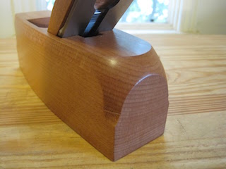 My planes feature the traditional finish details of period planes: Bold long chamfers on the sides, and stopped chamfers finished by gouge cuts on the ends. When the plane is done, I test it thoroughly, finish it with oil, test it again, and send it out into the world. |